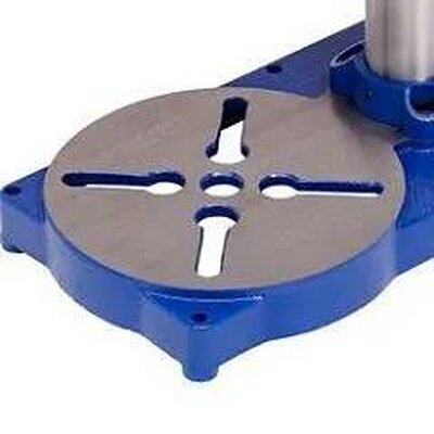- Чугунное основание снижает вибрации и обеспечивает устойчивость станка. Монтажные отверстия позволяют закрепить оборудование на верстаке для точного сверления.
