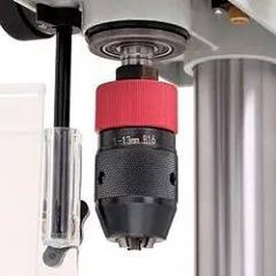 - Быстрозажимной патрон с посадкой В16 упрощает смену инструмента диаметром хвостовика 1-13 мм. Ход пиноли 50 мм расширяет возможности обработки.