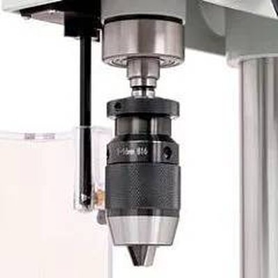 - Быстрозажимной патрон с посадкой В16 упрощает смену инструмента диаметром хвостовика 1-16 мм. Ход пиноли 50 мм расширяет возможности обработки.