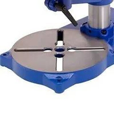 - Чугунное основание снижает вибрации и обеспечивает устойчивость станка. Монтажные отверстия позволяют закрепить оборудование на верстаке для точного сверления.