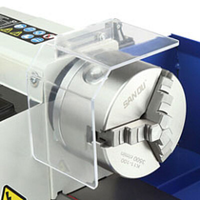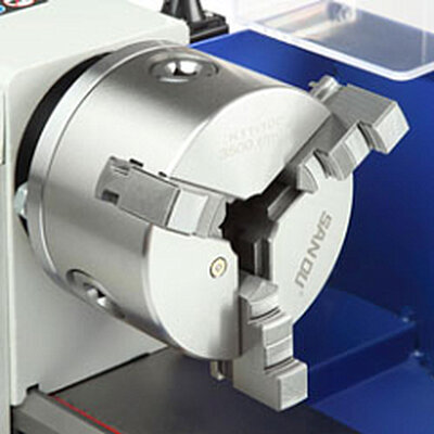 - Трёхкулачковый патрон диаметром 100 мм с широким диапазоном зажима обеспечивает надёжную фиксацию заготовок. Поддержка автоподачи при нарезании резьбы и диапазон метрических резьб 0,5-2,5 мм делают станок удобным для точных и повторяемых работ.